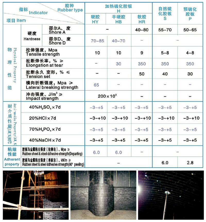 • 橡膠襯里品種及性能表